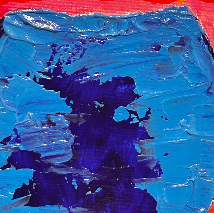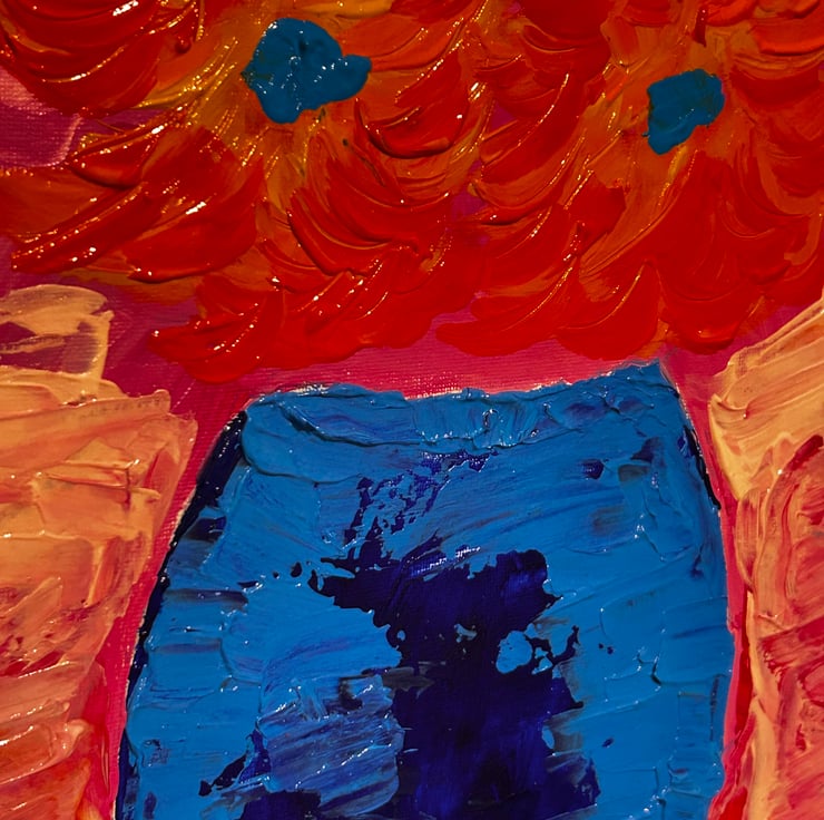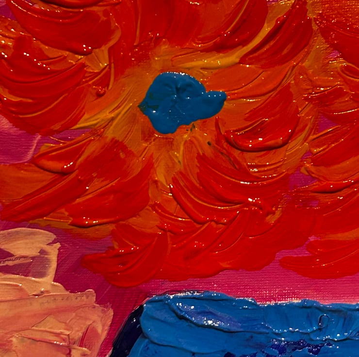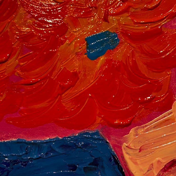 Heavy bodied professional acrylic paint mixed with an extra heavy gloss gel to create an impasto painting.