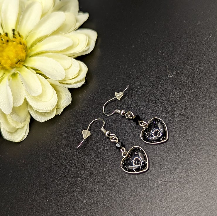 These fabulous earrings have been handmade using hand poured, ink dyed glitter infused resin.