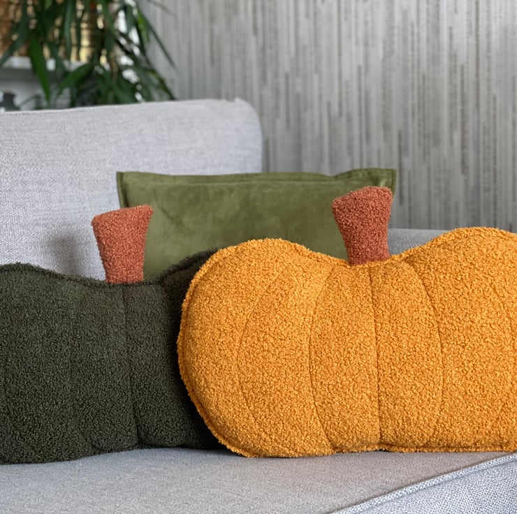 Forest Green Boucle Pumpkin Cushion Autumn Fall Halloween Decor Pillow