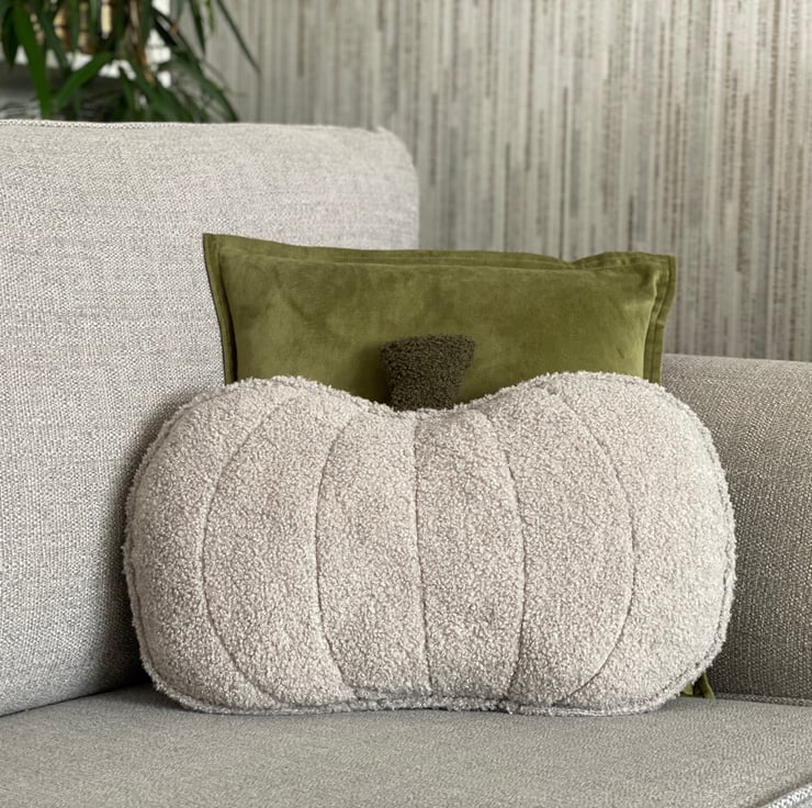 Add a touch of playful charm and spooky elegance to your home with the Light Grey Boucle Ghost Pumpkin Cushion! Perfect for embracing the autumn spirit, this cushion is a wonderful addition to your bed, sofa, or favorite armchair. Its unique ghostly pumpkin shape, paired with a soft light grey boucle fabric, creates a cozy yet whimsical vibe, perfect for Halloween and fall decor.
