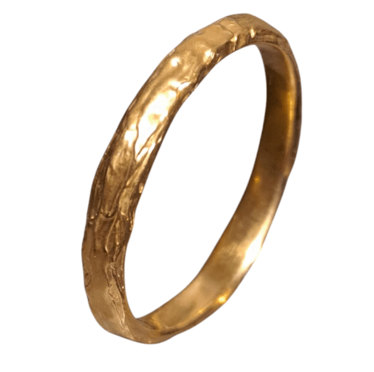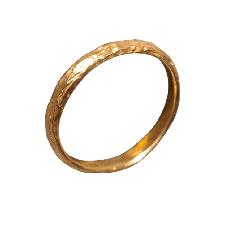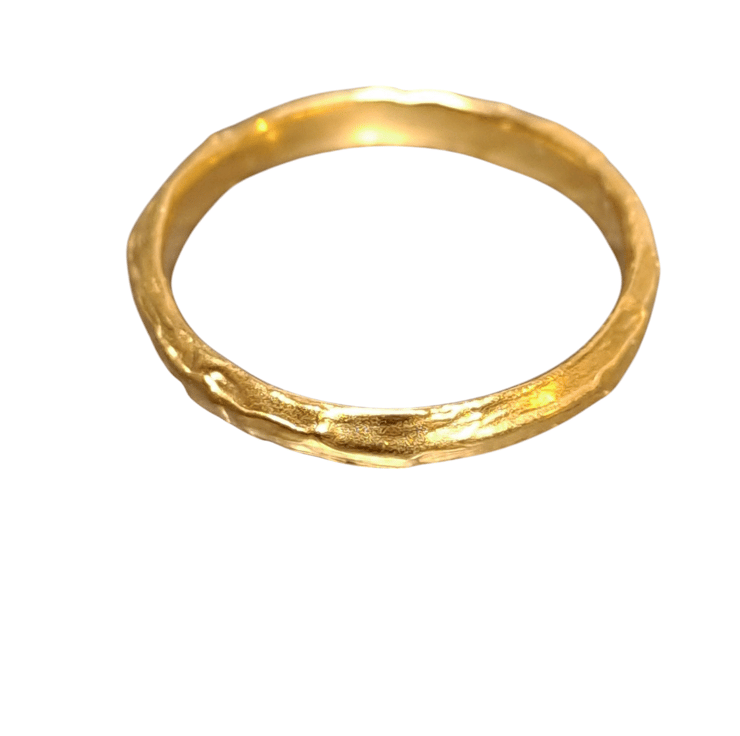 An organic ring in recycled 18ct yellow gold. This design is made with solid gold , and has a molten gold feel to it . It's something a bit contemporary which ive designed with wedding rings in mind, but equally just makes a stunning stacker , or stand alone ring. It's 2mm wide and has a slight curve on the inside edge for a comfort fit. These rings are made to order so will take 4 to 6 weeks, but are available in any metal, just enquire for pricing. All my rings are made using recycled precious metals, and all will come with a hallmark for quality assurance of the metals.