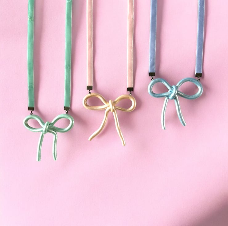 Handmade Pastel Bow Necklace – Coquette-Inspired Jewellery on Velvet Ribbon