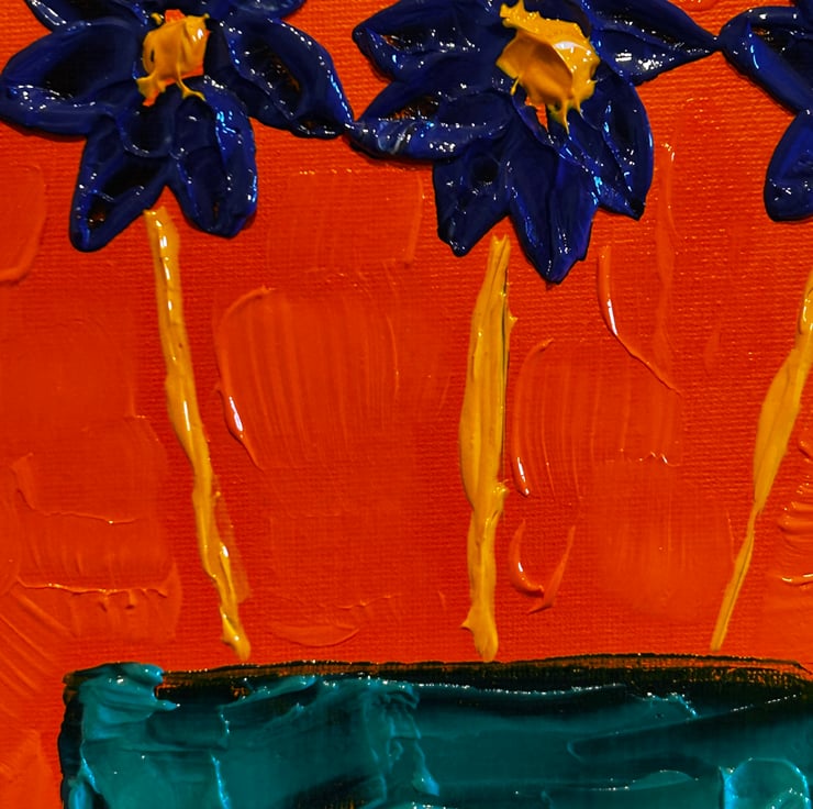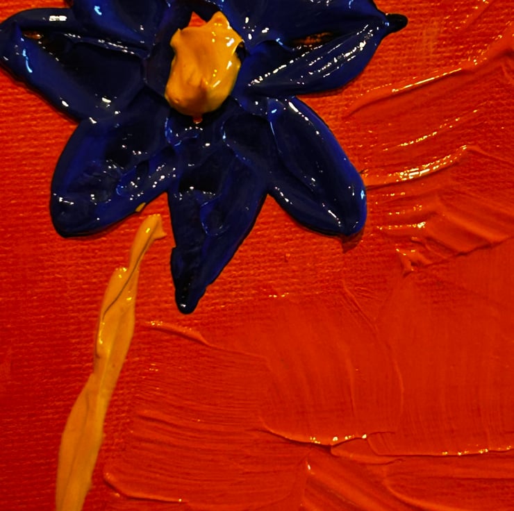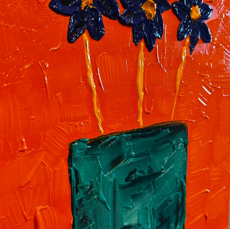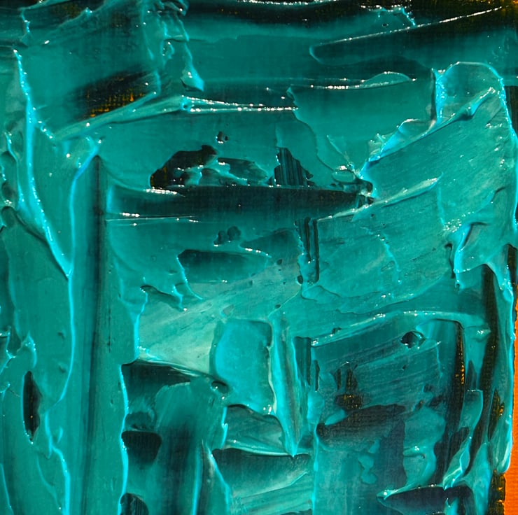 This professional heavy bodied acrylic is mixed with an extra heavy gel gloss, creating a textured 3d look- impasto. Pallet knives were used to create this look.
