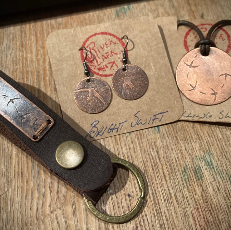 I designed a swift motif to adorn the frailing scoop of my banjo; they are my favourite of the hirundines (swifts, swallows and martins). I translated them into a design suitable for my jewellery and leatherwork. I love the clean lines and the elegant simplicity that still manages to convey the sense of movement.