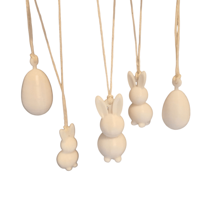 Set of five hang-up Easter bunnies decoration ornament.