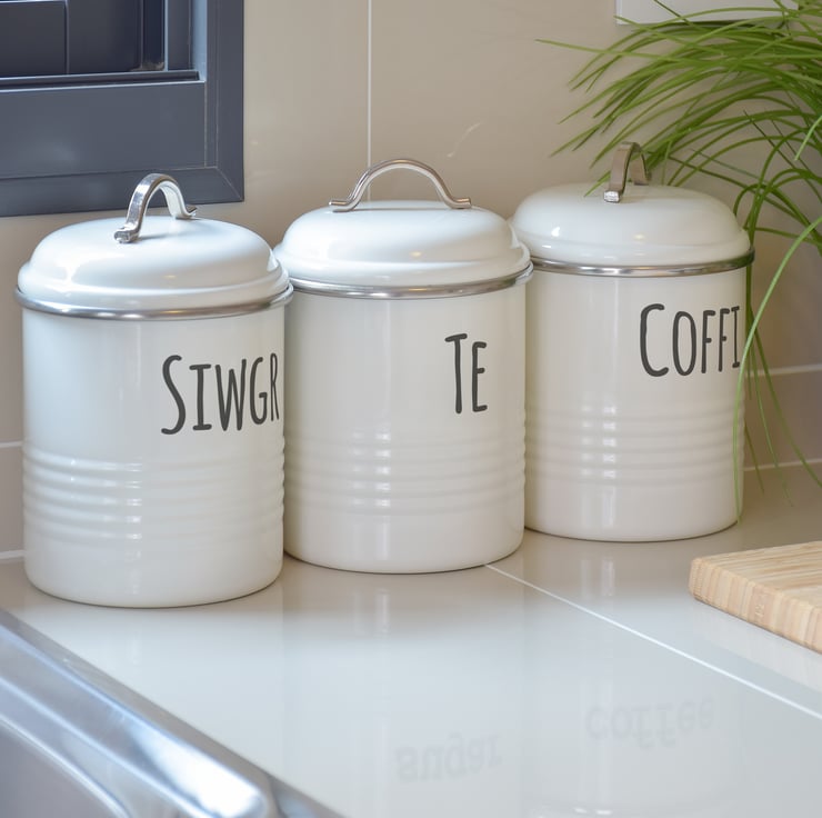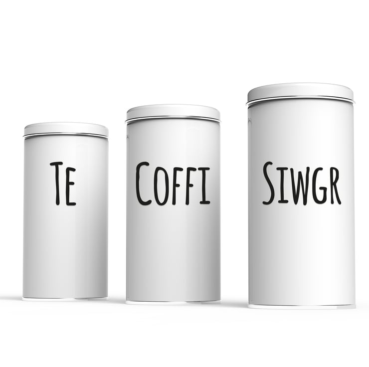 Welsh Kitchen Canister Stickers – Handwritten: Tea, Coffee, Sugar Labels, Home