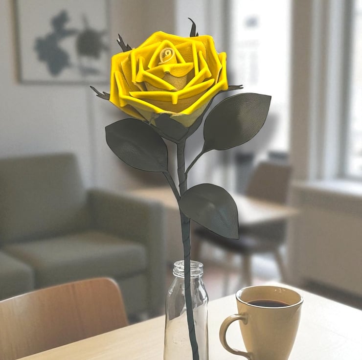 Each petal is individually shaped and assembled with care, creating a lifelike and timeless piece that will never wilt or fade. Whether as a symbol of friendship, appreciation, or a burst of sunshine in your décor this gorgeous rose makes a unique and meaningful gift.