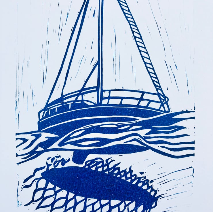 Sailing print, sailing Lino print, nautical print, nautical Lino print, boat