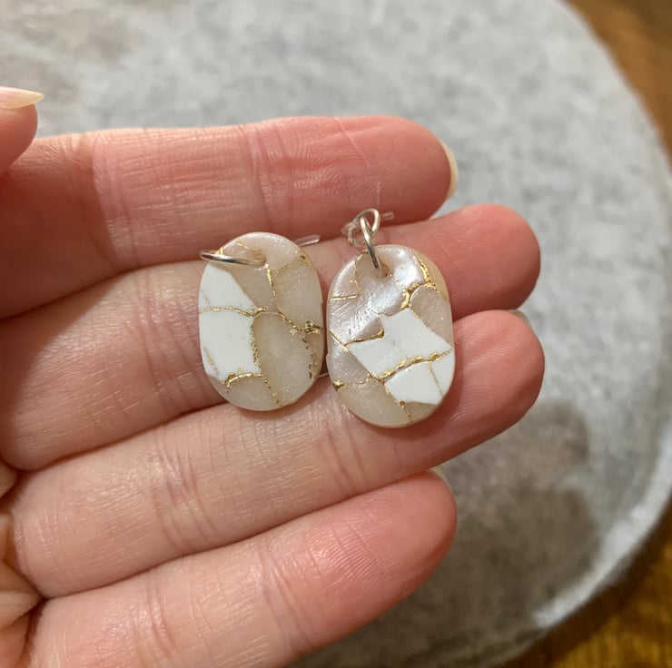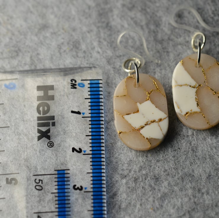 These earrings are approximately 2cm in diameter and made from polymer clay with glitter varnished on top.