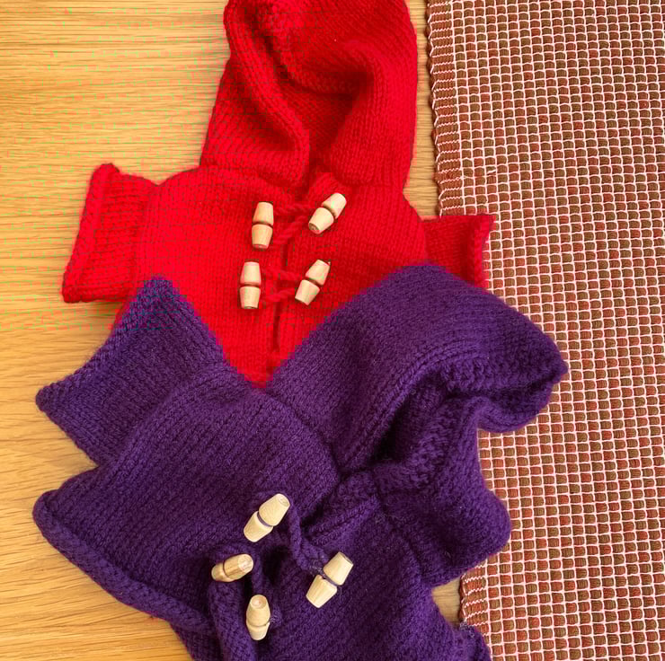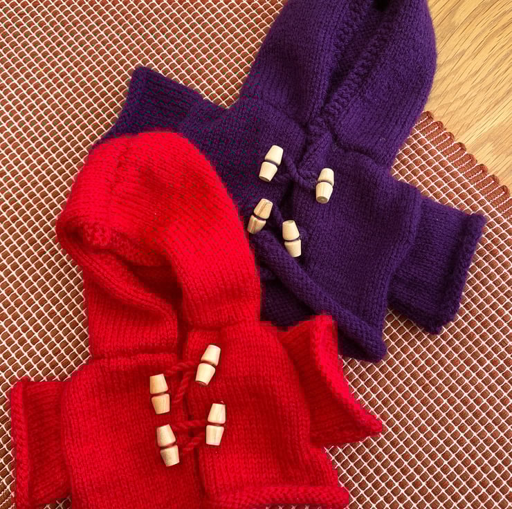 As requested 2 x hand-knitted duffle coats to fit Bearlescent Bears