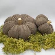 Made with soft cotton fabric and filled with hypoallergenic polyester filling, each pumpkin is plush, lightweight, and safe for all spaces. The driftwood stick on top provides a natural, rustic accent that beautifully contrasts with the soft beige tones, making them a versatile and stylish addition to your fall decor collection.
