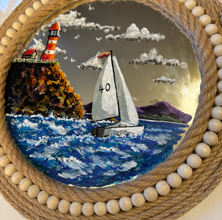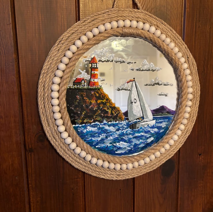 A hand painted and fired glass mirror by Andrew Jenkins