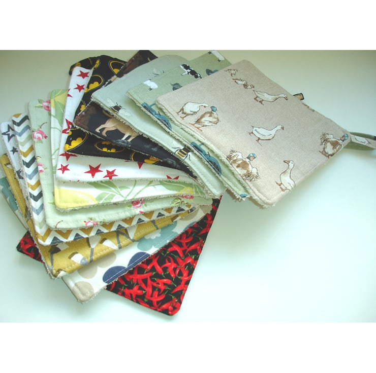 A Pot Holder backed with a cream towel fabric - useful for mopping up around the kitchen,