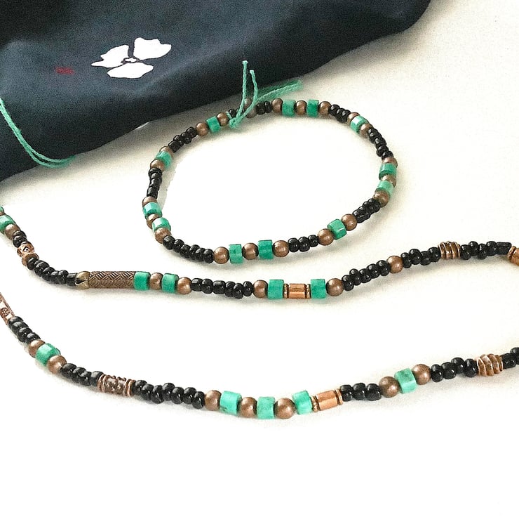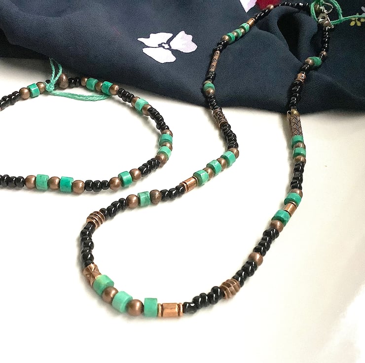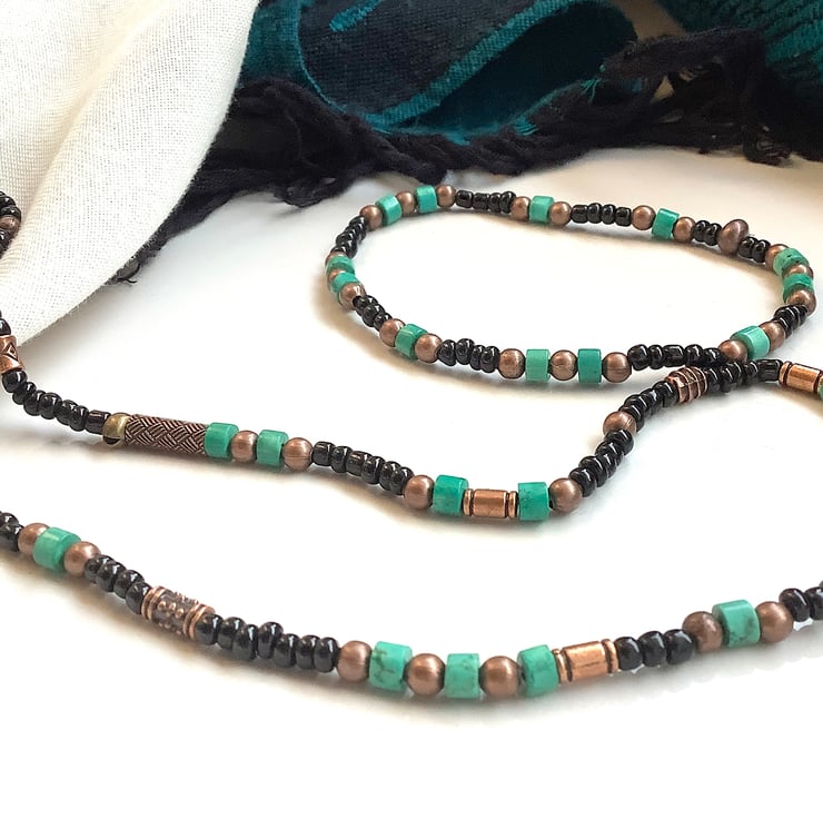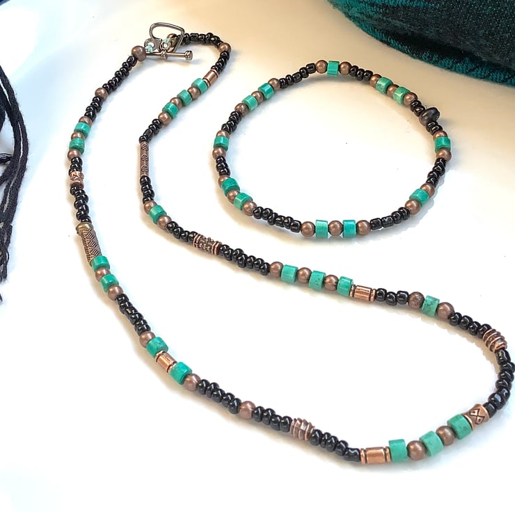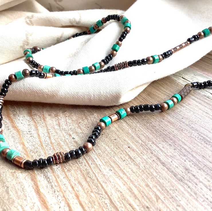 Natural turquoise, Copper effect metal beads and acrylic beads