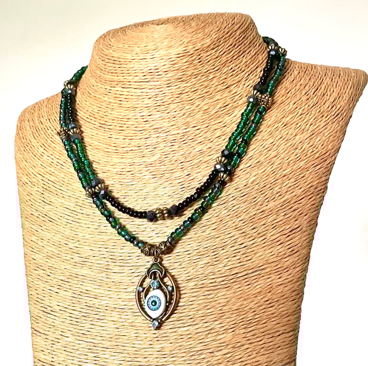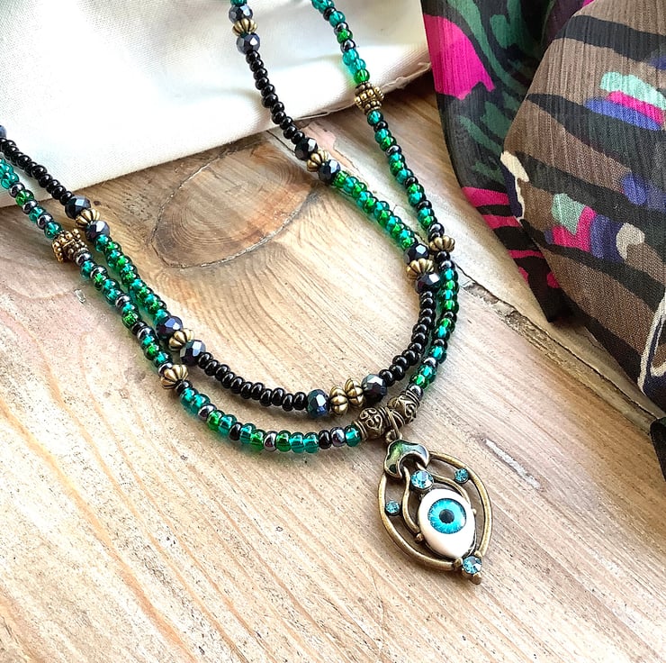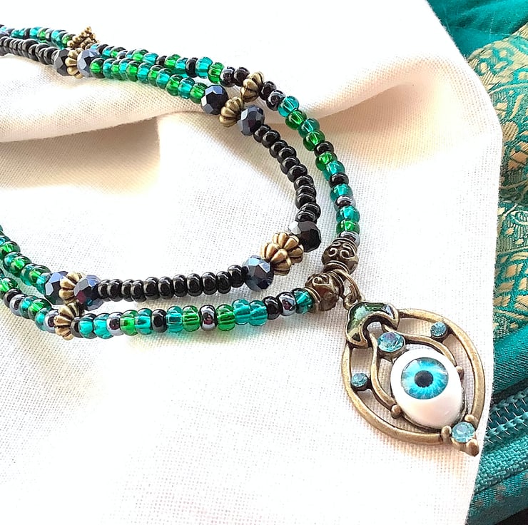 The eye pendant is from earrings, I have had for a long time. One of the pair is missing, so the earring is a pendant for a quirky necklace