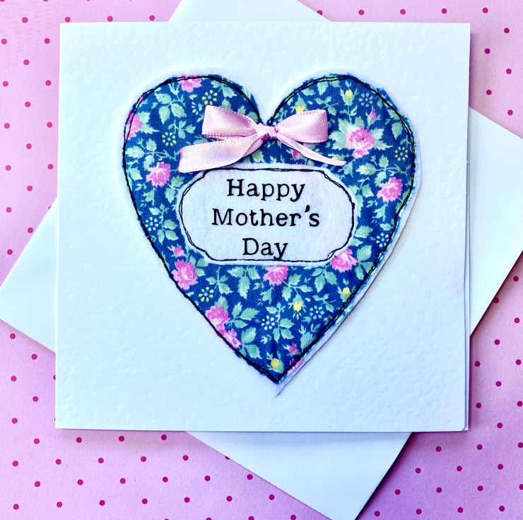 Mother’s Day Card Fabric Heart Free Motion Embroidery Luxury Card