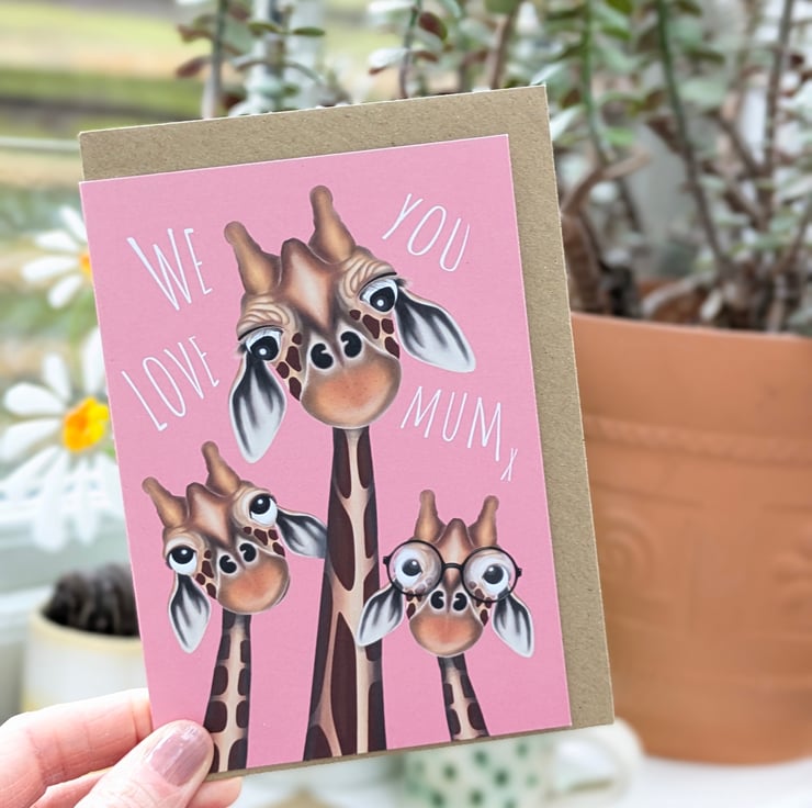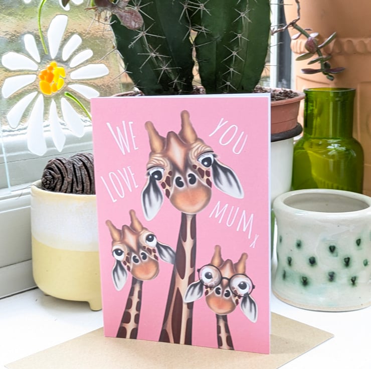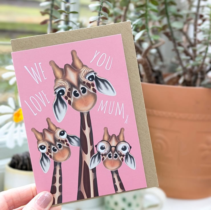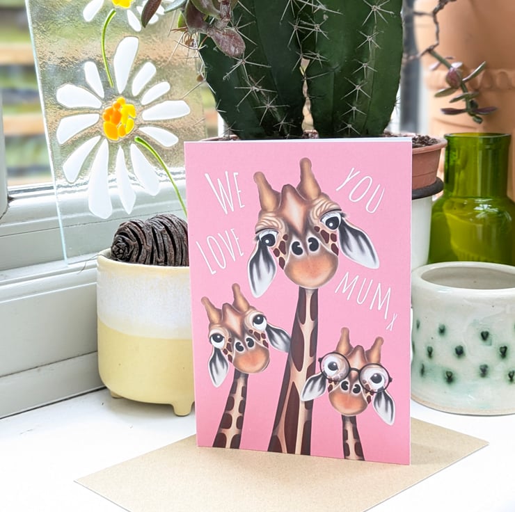 'We Love You Mum' Giraffe Family Greetings Card - Eco Friendly Card.