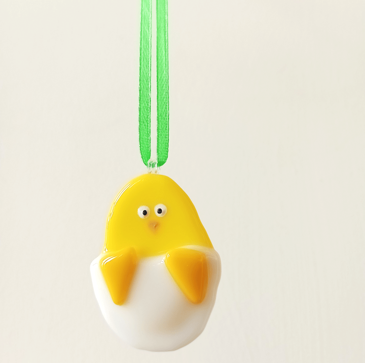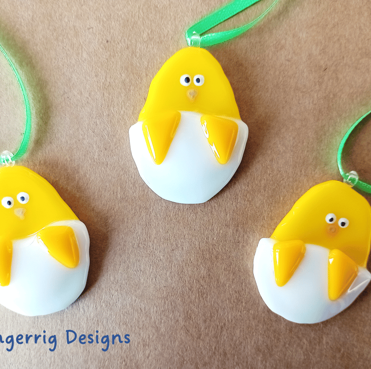 These fused glass hatching chicks have been handmade by me in my studio in the Wye Valley.