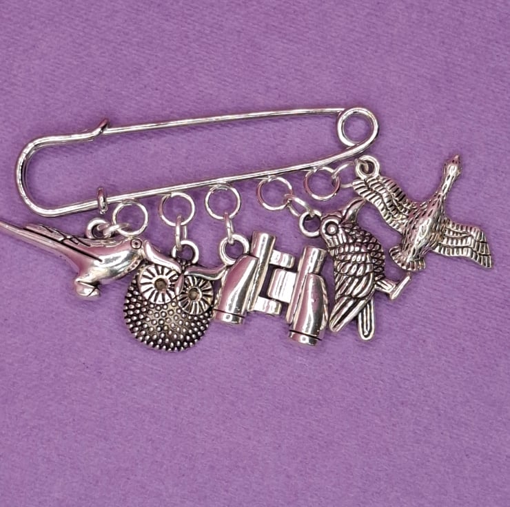 A kilt pin with 5 charms. I make many themes but am always up for the challenge of making a individual one for you. Hobbies, profession, interest, books, films whatever you would like.