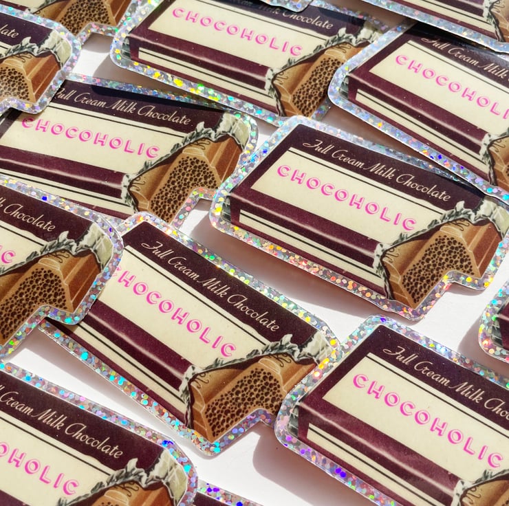 One sparkling glitter chocolate bar sticker to adorn your notebook, laptop, phone, car, bike....there are a million uses for it! Make everything shimmer and shine!
