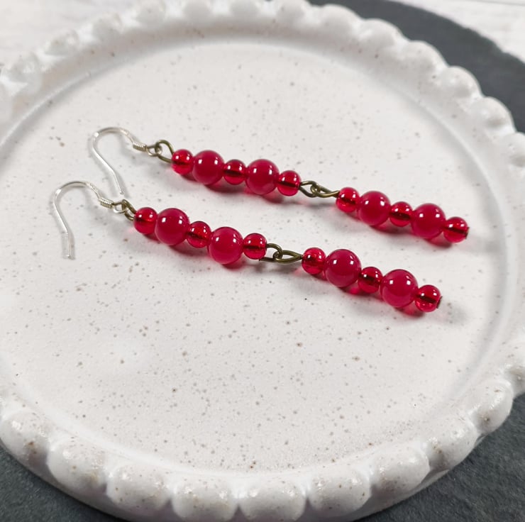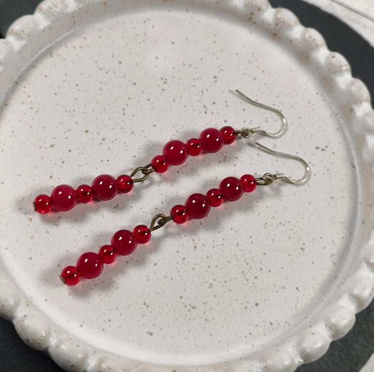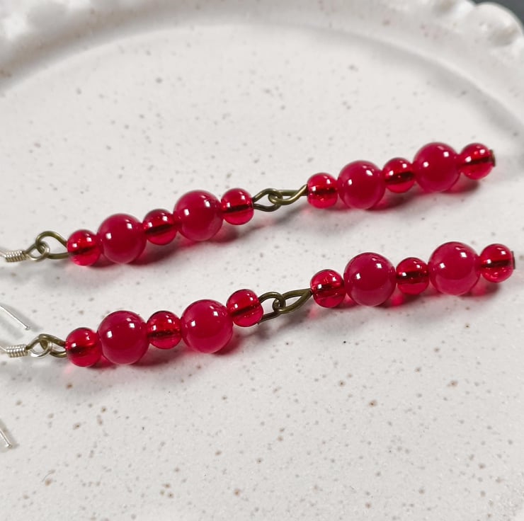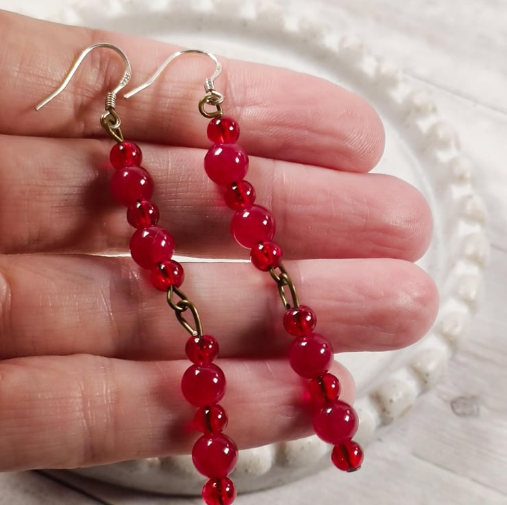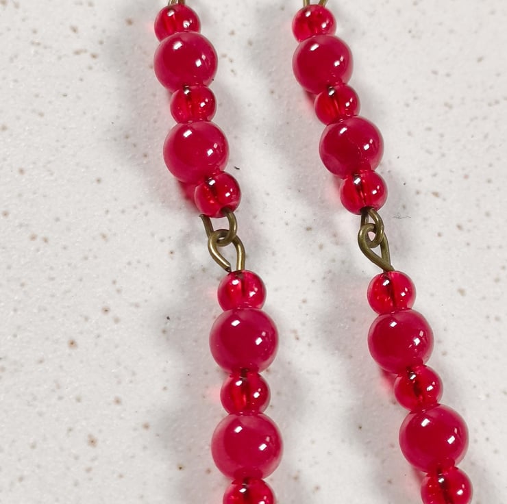 Beautiful long red beaded earrings. These red bead earrings are absolutely gorgeous.