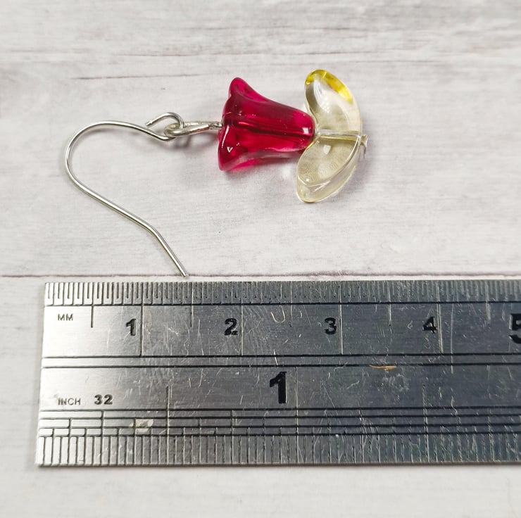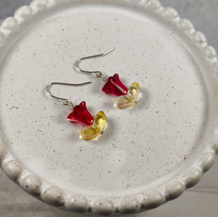 Absolutely lovely little Czech glass red and yellow flowers earrings.
