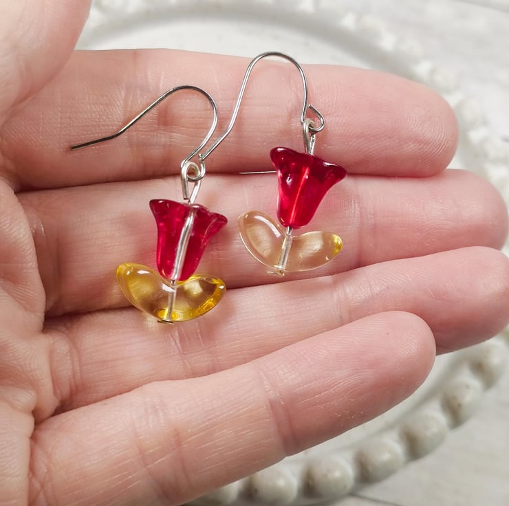 These lovely earrings are inspired by the beautiful Spring tulips in my lovely Mum's conservatory.