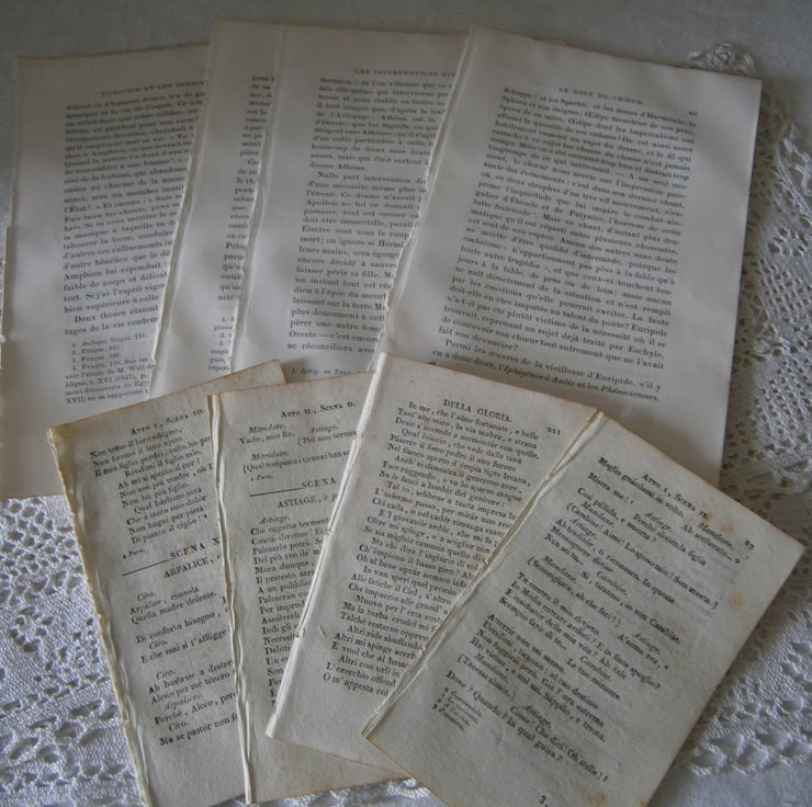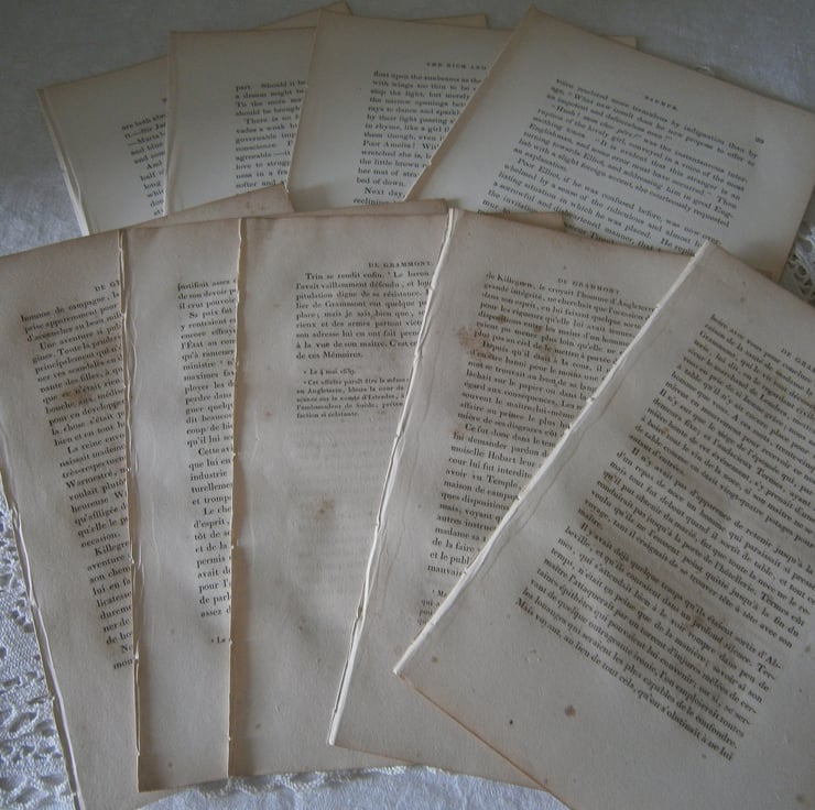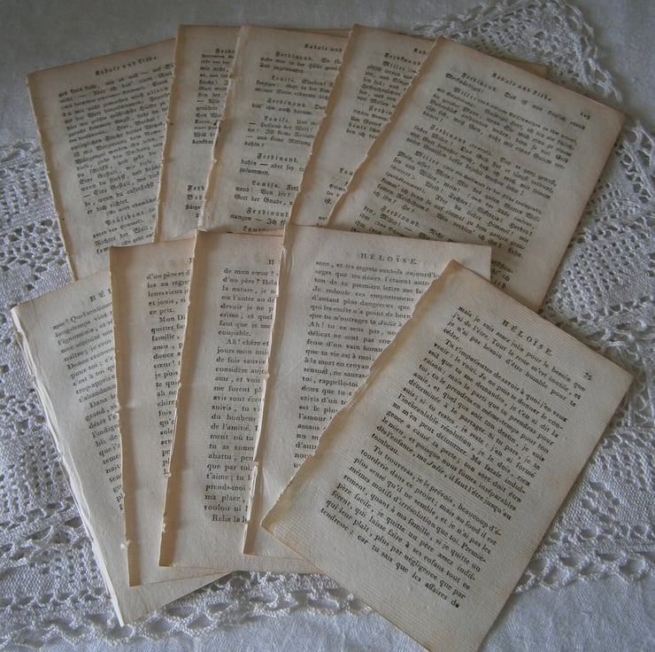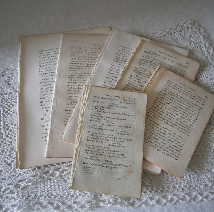 I have over 50 pages of antique / vintage book pages. They will be a mixture of about 8-10 of each kind from six different books spanning from 1792 to 1893. I've taken several pictures of them and I've listed the titles, printing date from the book along with the location. A movie can be viewed here: https://youtu.be/vUvnmePBw5I.