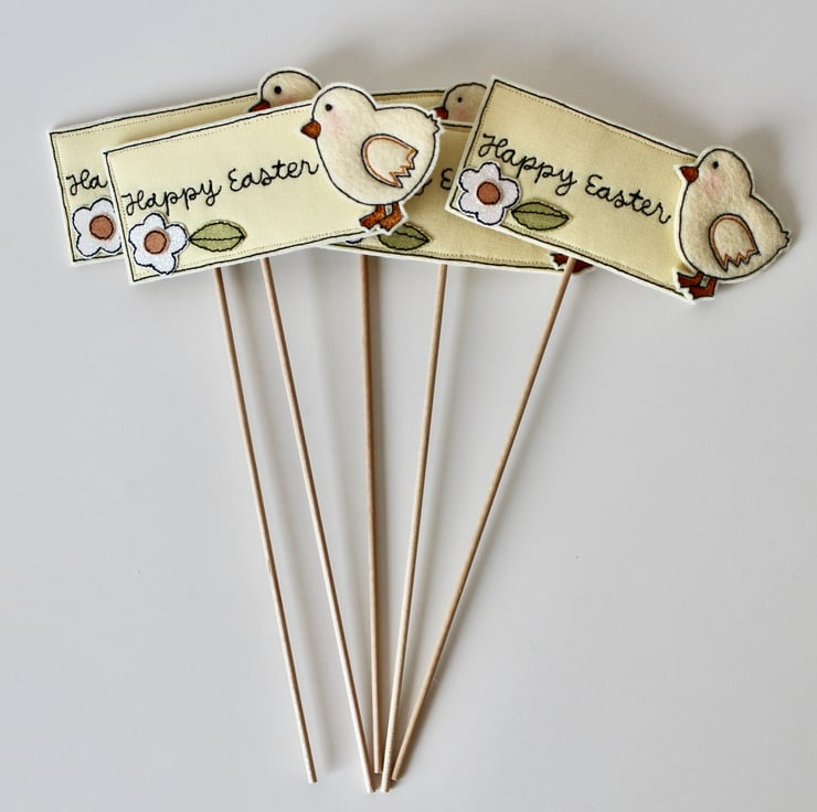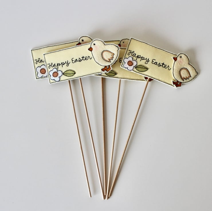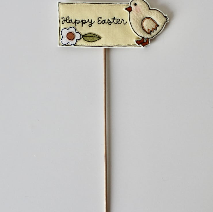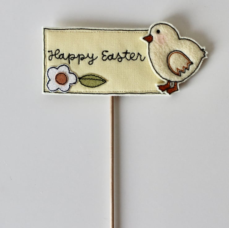 A 'Happy Easter Chick' sign which could be added to a Simnel cake, a bunch of Easter blooms or an Easter gift.