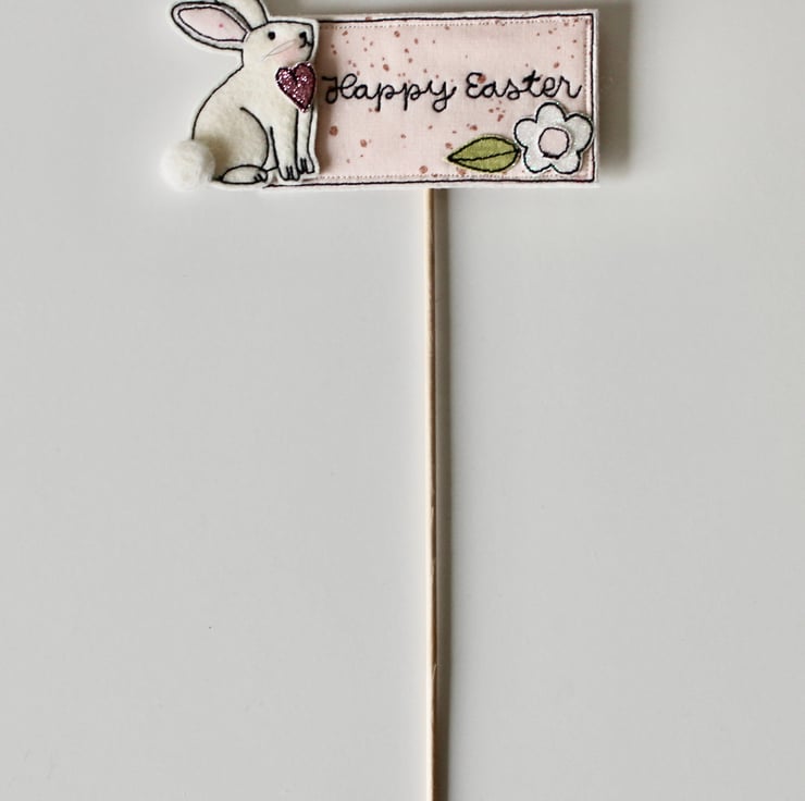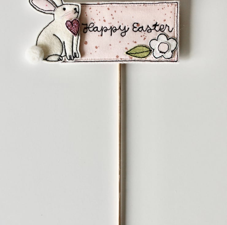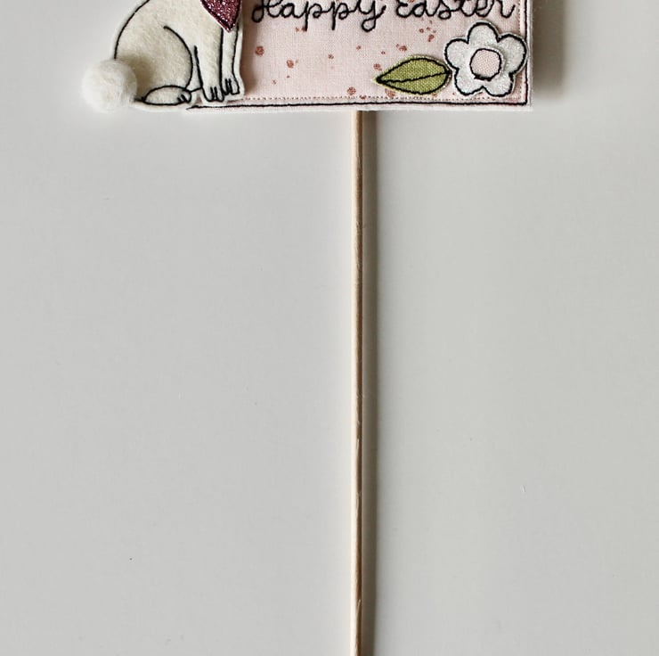 A 'Happy Easter Bunny' sign which could be added to a Simnel cake, a bunch of Easter blooms or an Easter gift.