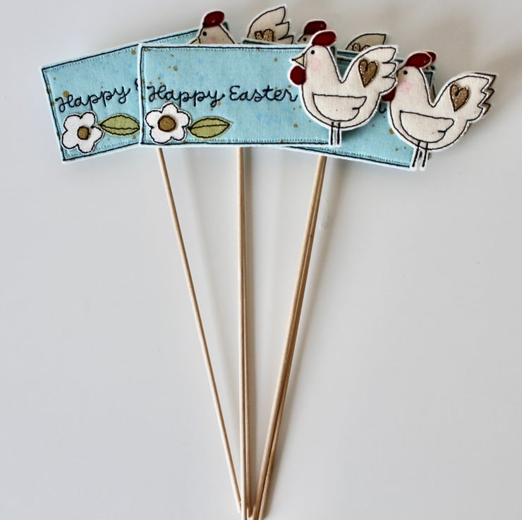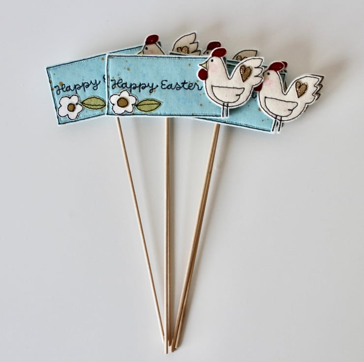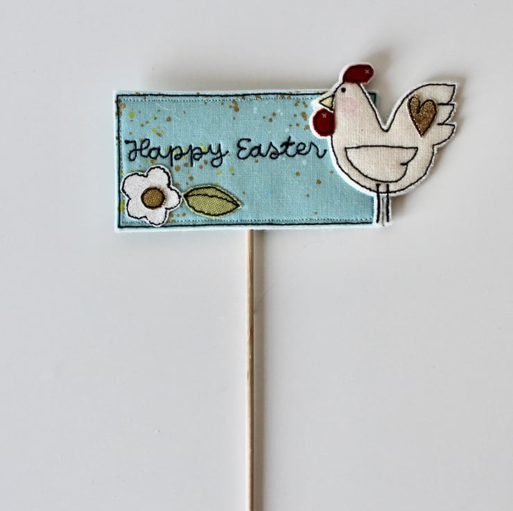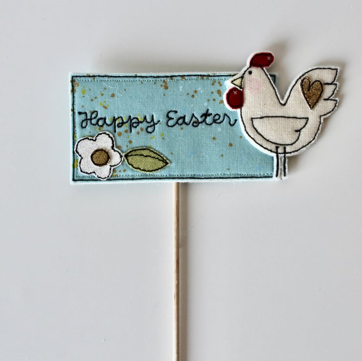 A 'Happy Easter Chicken' sign which could be added to a Simnel cake, a bunch of Easter blooms or an Easter gift.