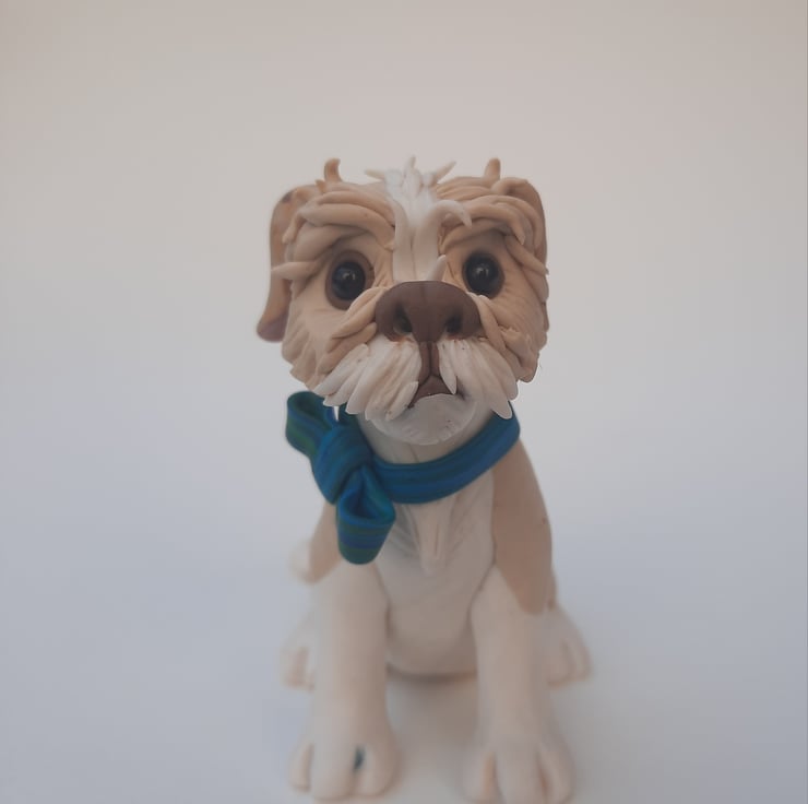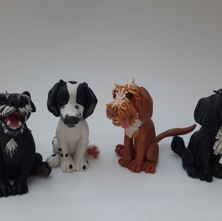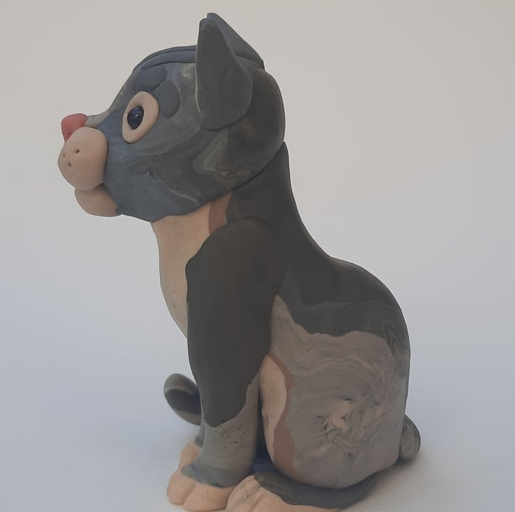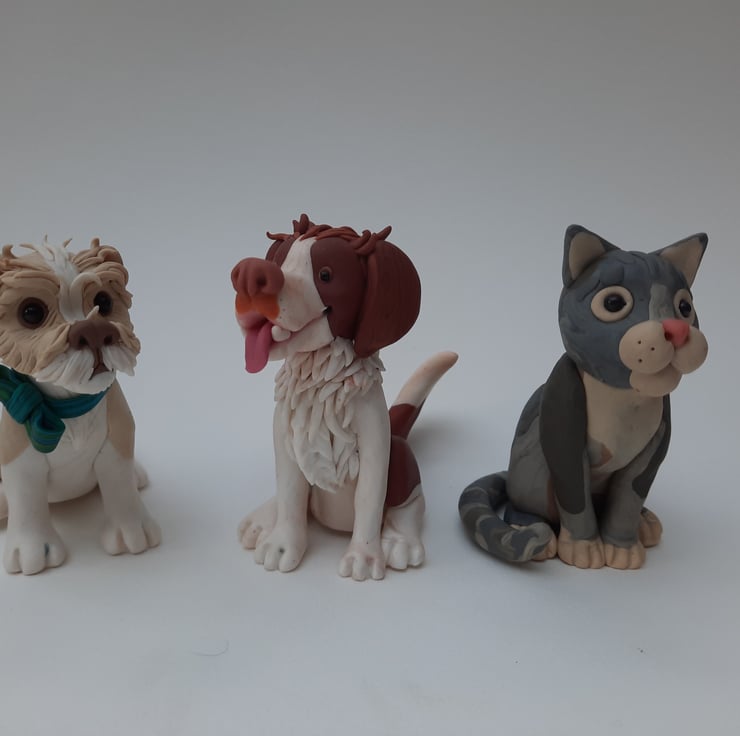 Commission a 3D portrait of you Beloved pet. Made from Polymer clay, in any colour. standing approx 9cm tall, and weighing approx 90g. These are stylized 3D pet portraits (I can do more realistic pet portraits; if you would be interested in this please contact me). once you have ordered I'll be in touch to find out about your fury friend and so you can send me some pictures to work from. Ill require a head on picture of your pet, both sides, and a back view. let me know if your pet has any distinguishing features you'd like included or made more of in the model, if there is a particular stance or pose you would like. The images here show mostly dogs and a cat, but I can do any animal in this style or in a more realistic finish. any questions please contact me.