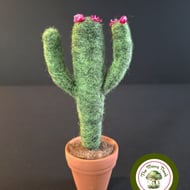 I needle felted this cactus using natural wool fibres and the pot is a real terracotta plant pot. This Saguaro is in flower and is wearing a crown of red blooms, which are tiny dried flowers that have been dyed. There are smaller flowers on the tip of one “arm”.