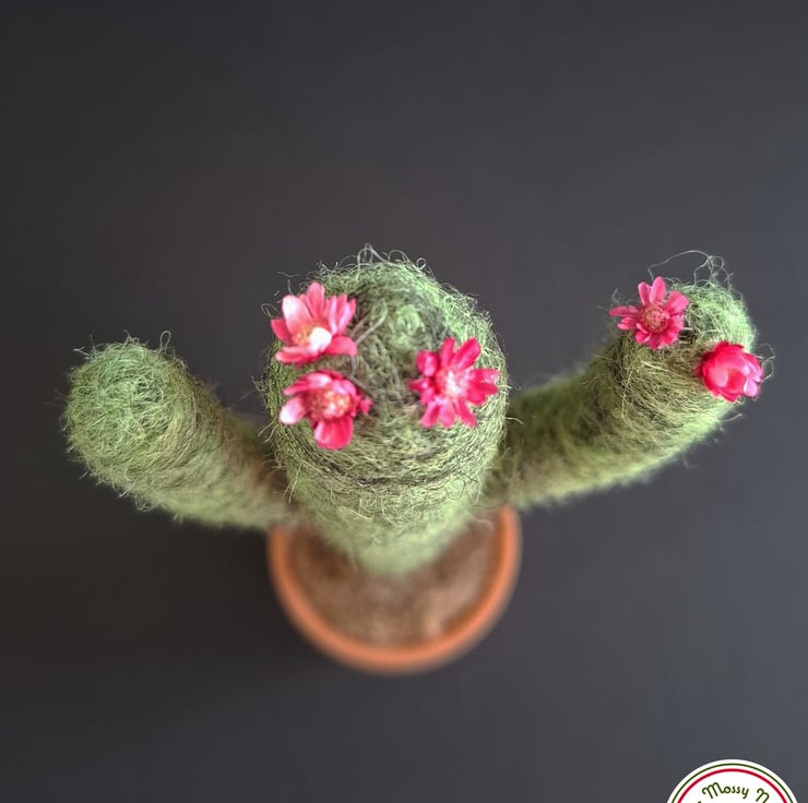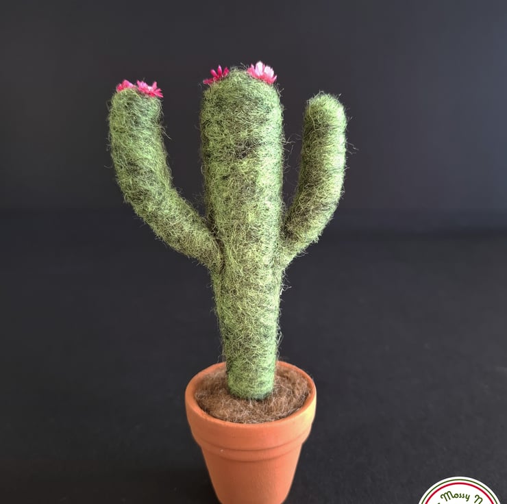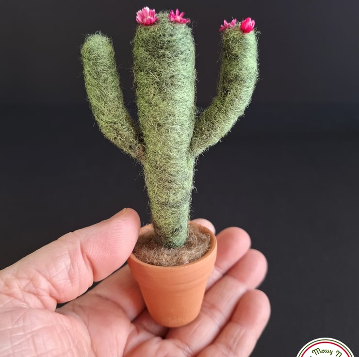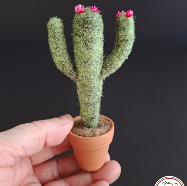 I needle felted this cactus using natural wool fibres and the pot is a real terracotta plant pot.