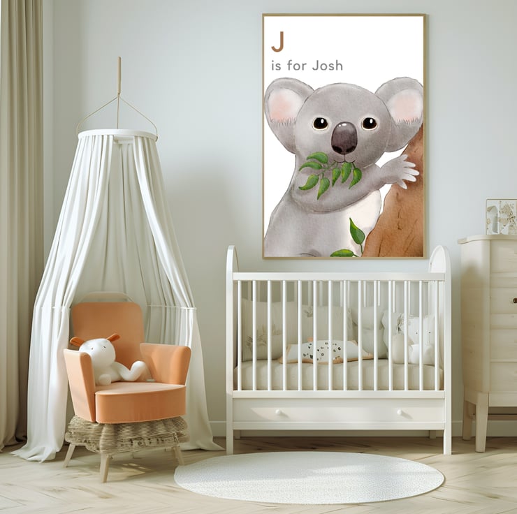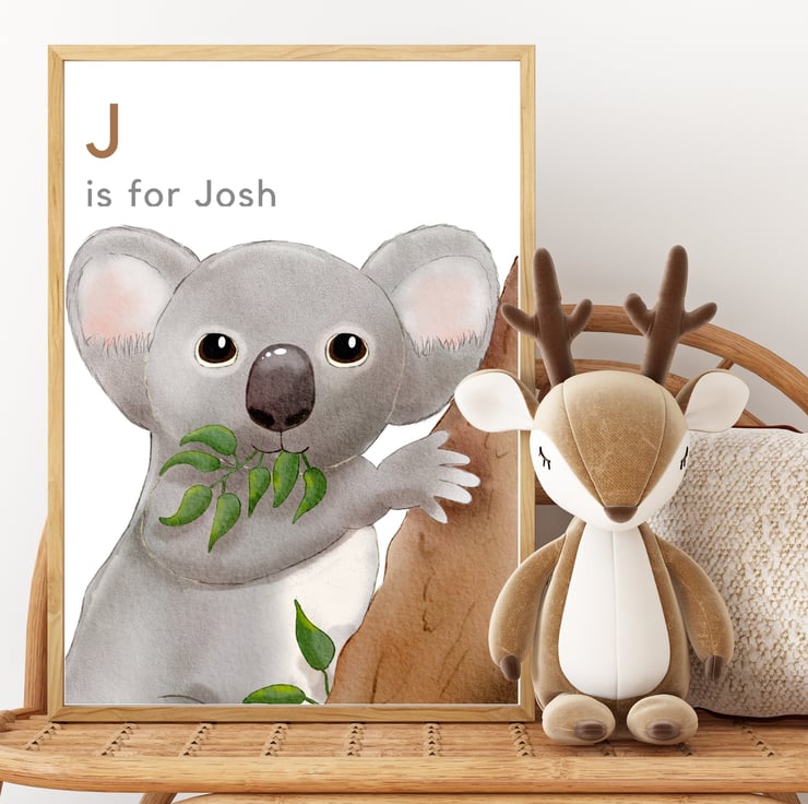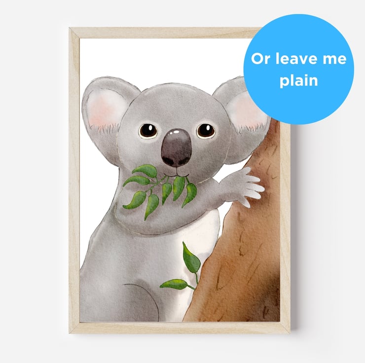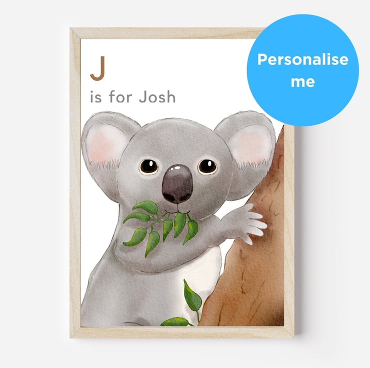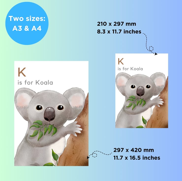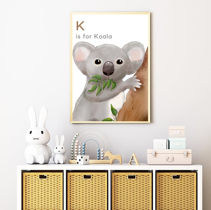 Optional personalisation. Why not add a name to make your print extra special? Can also be printed with the words 'K is for koala', your own wording, or with no wording according to your preference.