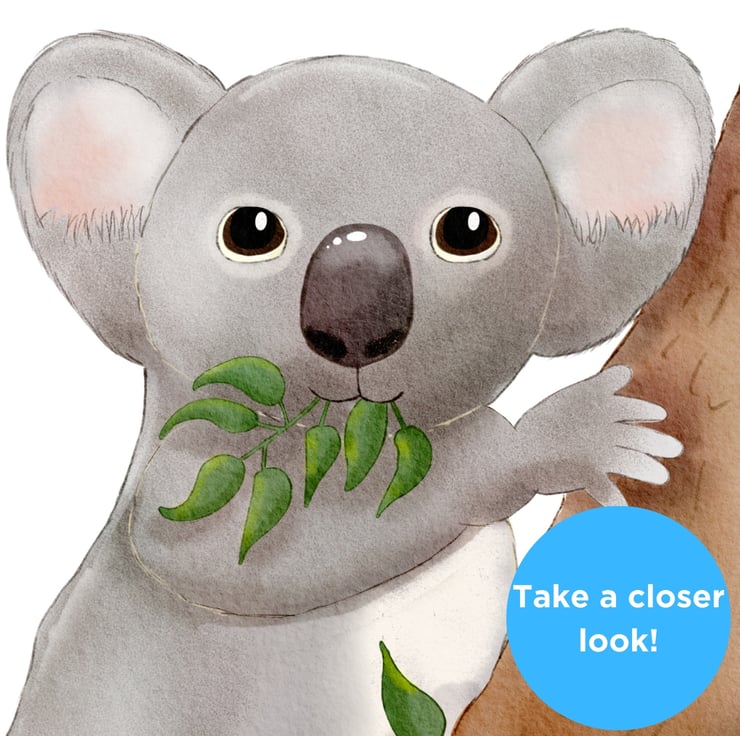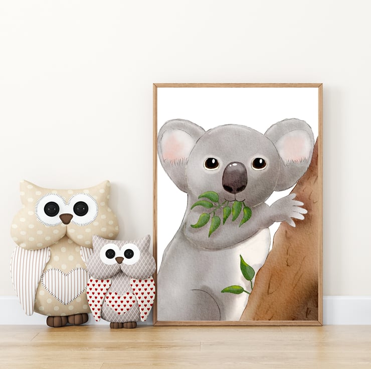 This delightful hand drawn illustration of a koala, munching on eucalyptus leaves, will enchant your child, sparking their curiousity and imagination, and transport them thousands of miles away to the other side of the world.