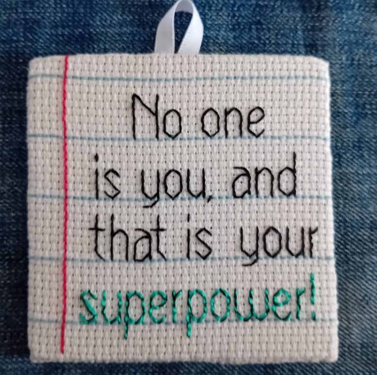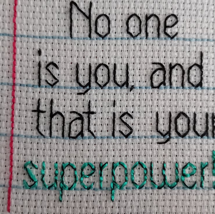 We love finding creative ways to turn simple materials into something special! This hand-embroidered wall hanging was inspired by a classic notebook page, and it’s extra meaningful because it’s made from leftover embroidery thread and Aida fabric from other projects. It's always great to find a new purpose for materials we already have! Whether it’s a reminder to stay inspired or a little boost of encouragement, we hope this piece adds a thoughtful, eco-friendly touch to your space!