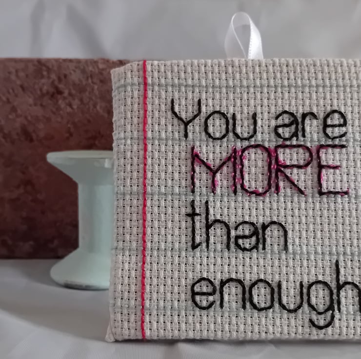 We love finding creative ways to turn simple materials into something special! This hand-embroidered wall hanging was inspired by a classic notebook page, and it’s extra meaningful because it’s made from leftover embroidery thread and Aida fabric from other projects. It's always great to find a new purpose for materials we already have! Whether it’s a reminder to stay inspired or a little boost of encouragement, we hope this piece adds a thoughtful, eco-friendly touch to your space!