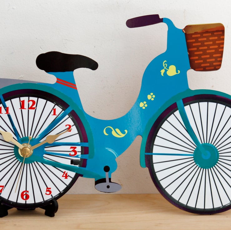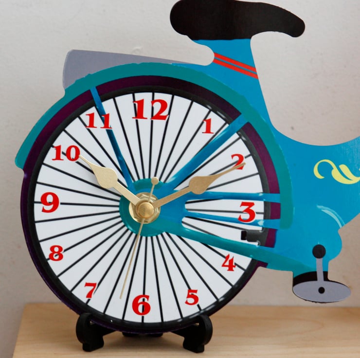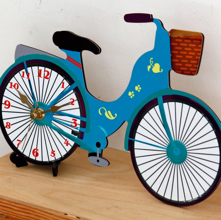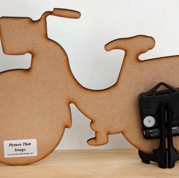 This Desk clock is approx 28cm wide and 19cm high at the extremities. It comes with a small stand to support the back wheel. The illustration is dye sublimated onto a metal substrate which is then fixed to a 3mm thick hardboard backing for additional strength.