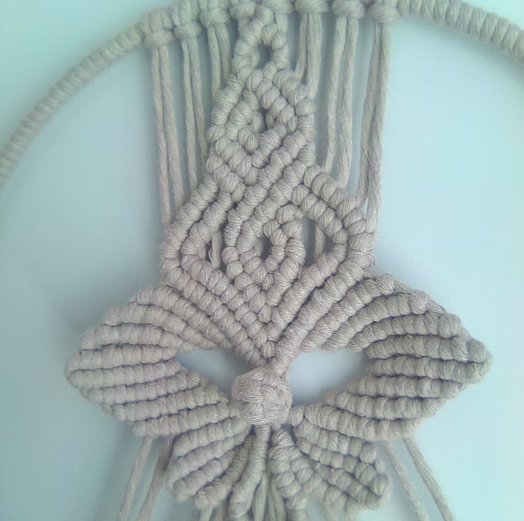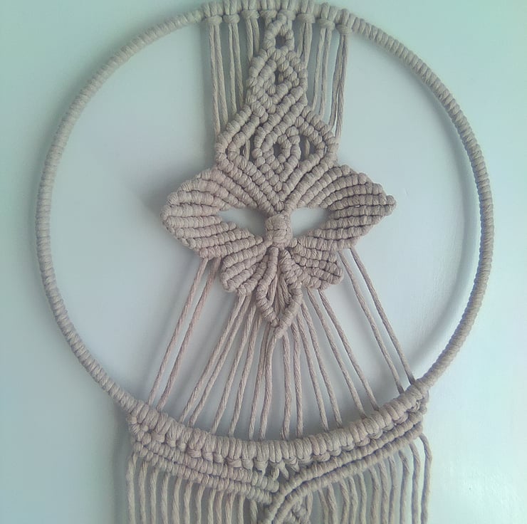 This macrame wall hanging features a lovely butterfly pattern at the centre of the hoop and I've used a neutral colour cord for this design that would suit any décor. The cord is also made from 100% recycled cotton making the design eco friendly too.