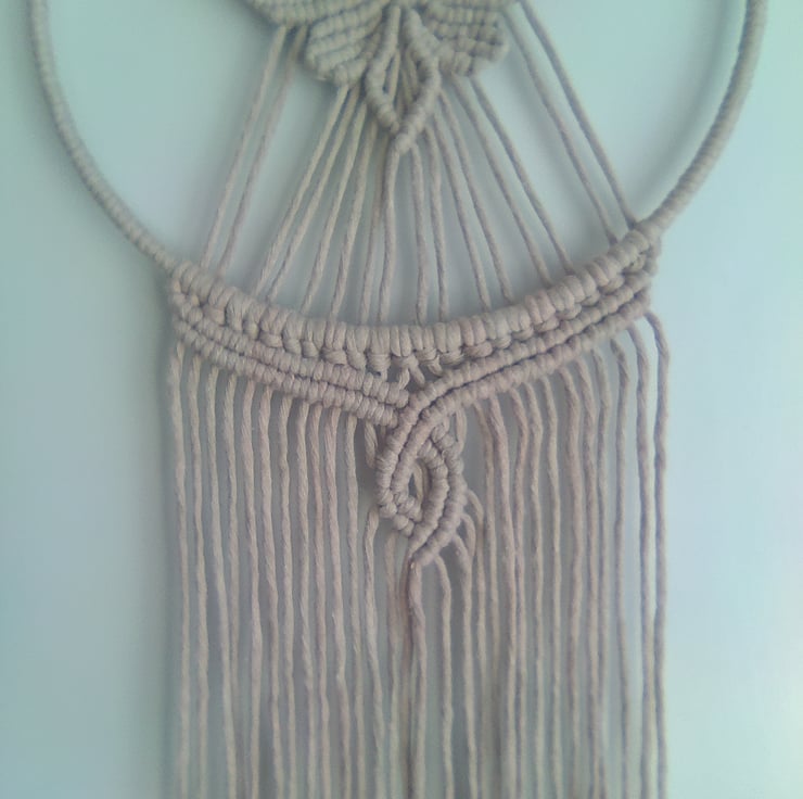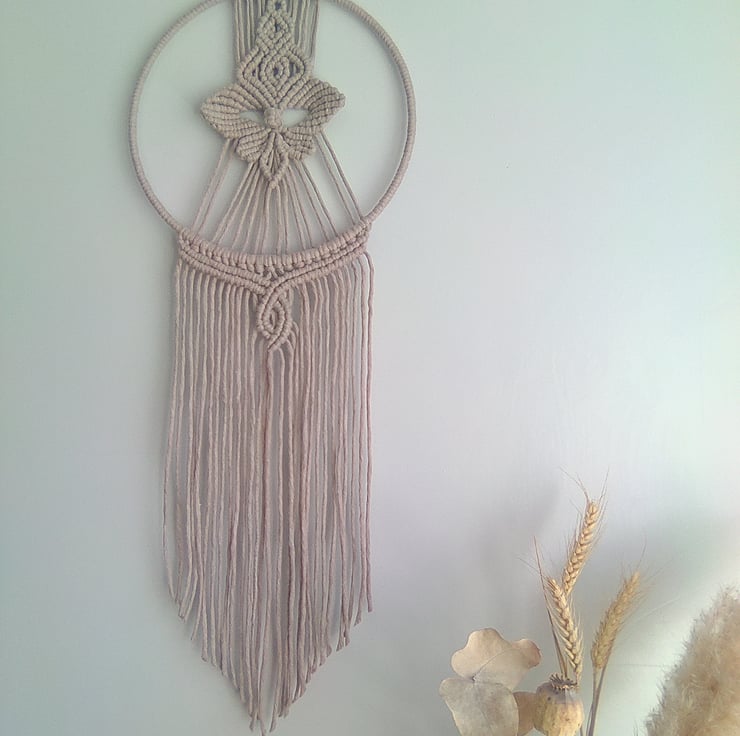 This wall hanging would add a lovely boho touch to any room and could easily be made in another colour to suit . Just send me a message to discus options.