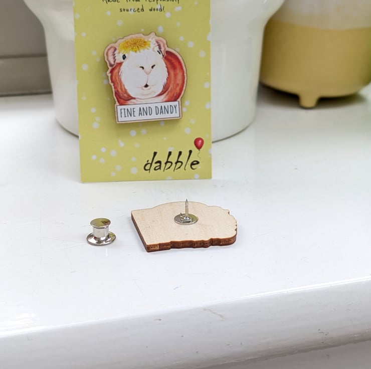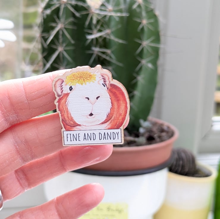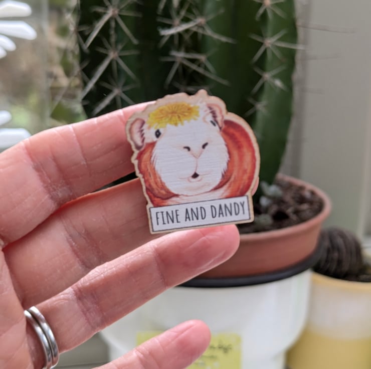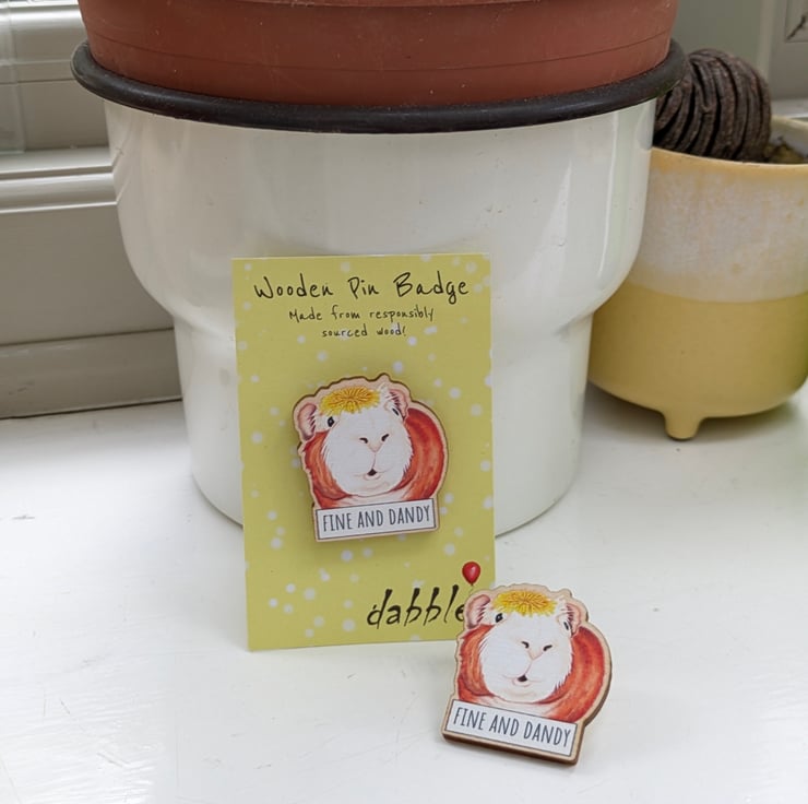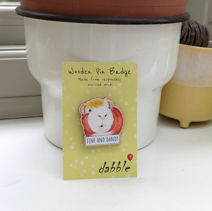 This sweet guinea pig, is wishing everyone well in their day. If you're the sort of person who loves to say hello to other's you pass in the street and infect others with a smile every day, this pin badge is for you. Treat yourself and wear on your jacket or lanyard or treat friends and loved ones or gift to a well deserving teacher who smiles at their pupils every day!