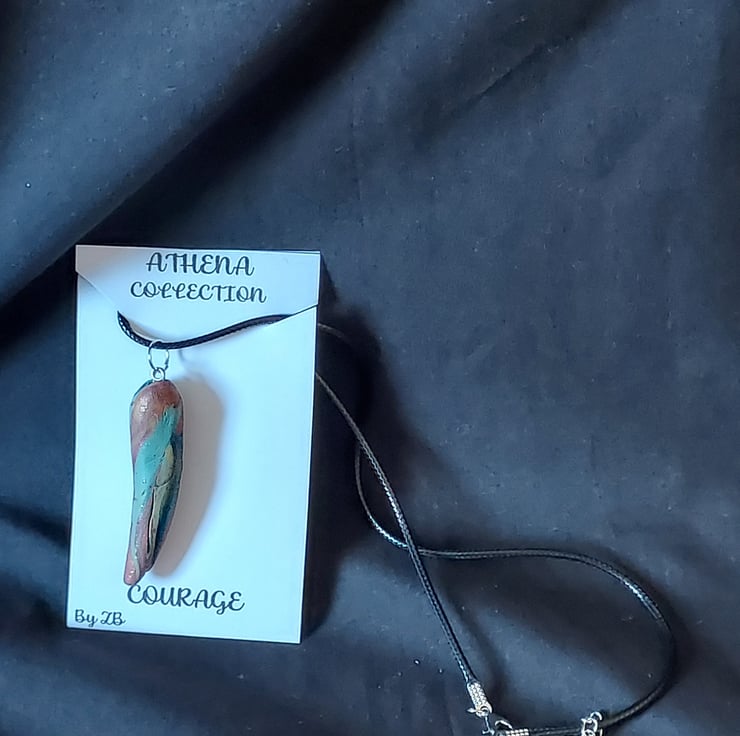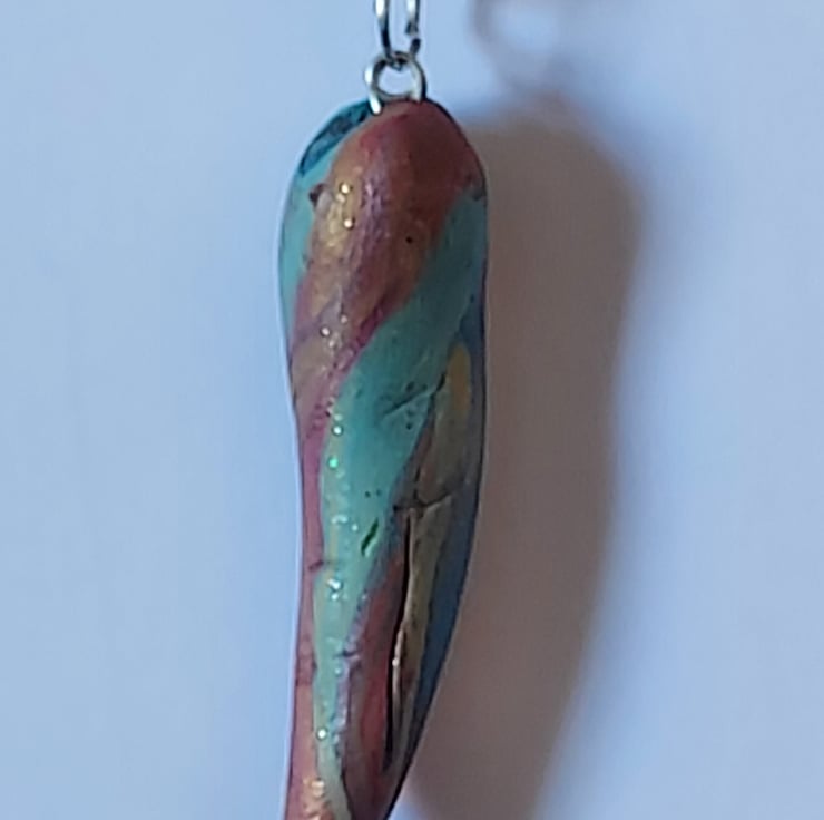 A clay pendant in a earth and water effect is a piece or art in its own right