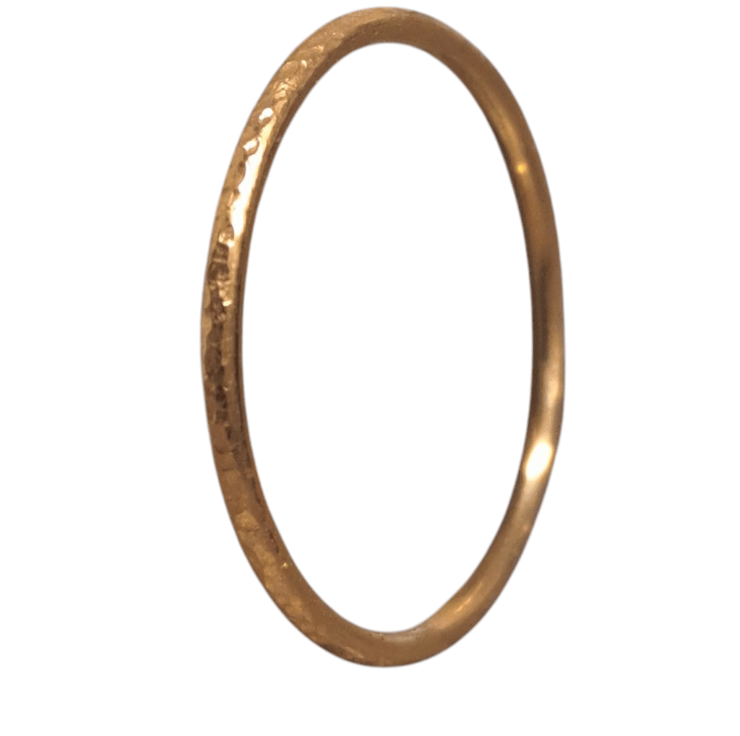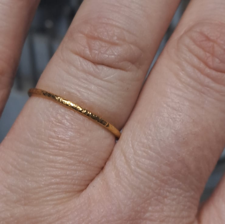 This beautiful ring is made using recycled solid, 18ct yellow gold, it's a halo shape with a subtle hammered texture . The ring us the perfect stacking ring or wedding ring. It's 1.5mm wide and will be made to order , do let me know the size required. All rings are hallmarked for quality assurance of the metal.