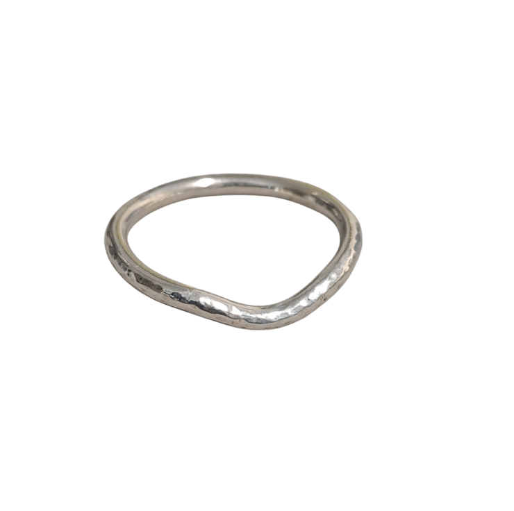 2mm halo style ring in recycled 9ct white gold with a hammer finish. These rings are curved to fit around your engagement ring, so I will need to get a photo of yours so I can make it sit beautifully next to it.