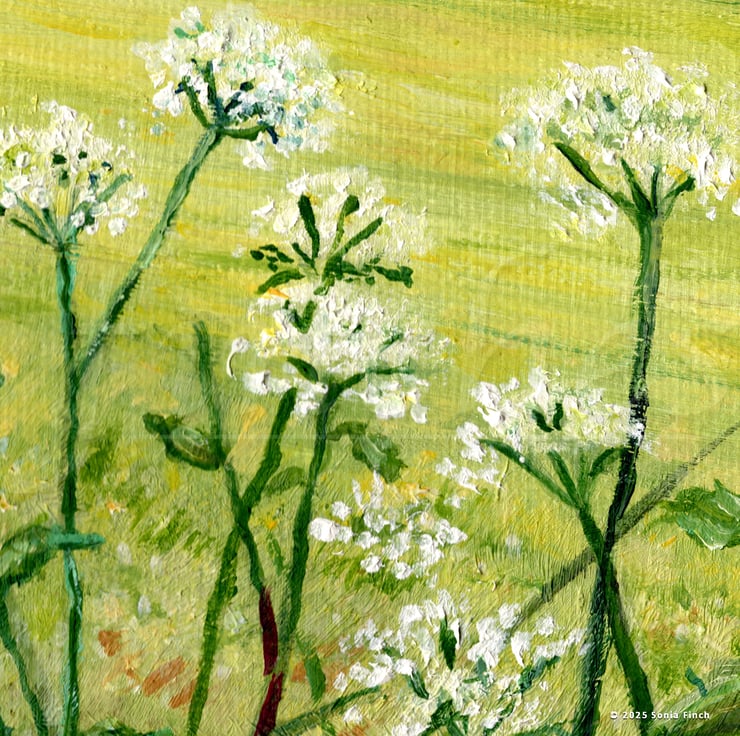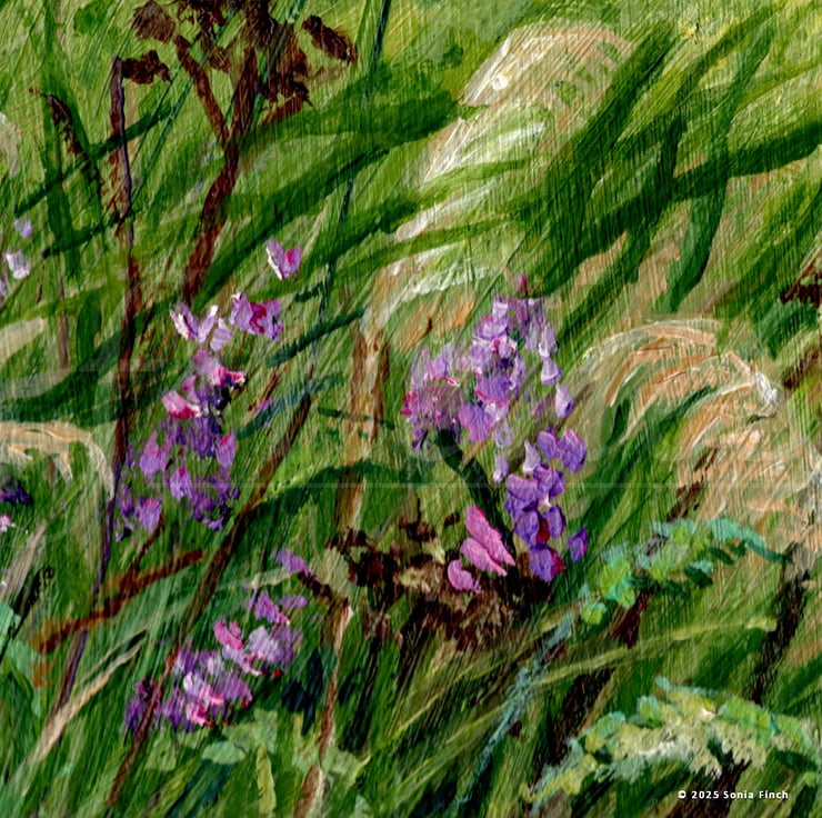Back in my studio, I wanted to recreate not just the scenery but the feeling of walking through it—the expansiveness, the timelessness, the sense of deep connection with the land. Layer by layer, I built up the textures, from the soft haze of distant hills to the intricate dance of wildflowers in the foreground. Color played a vital role in shaping the mood. I blended warm, sunlit golds with the cool blues of the sky and the soft greens of rolling meadows, letting them merge in ways that reflect the shifting light of the South Downs. The final touches—subtle highlights, the impression of a breeze whispering through the grass—brought the piece to life, turning a canvas into a portal to that serene summer’s day.
