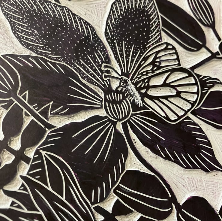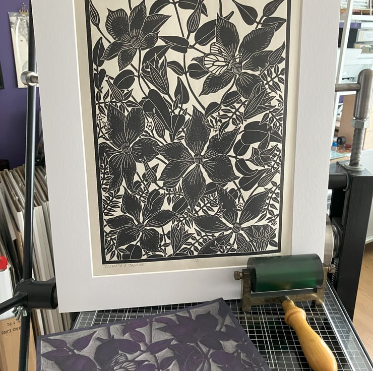 Lino Print - Clematis & Jasmine - Flower Print - Limited Edition Linocut