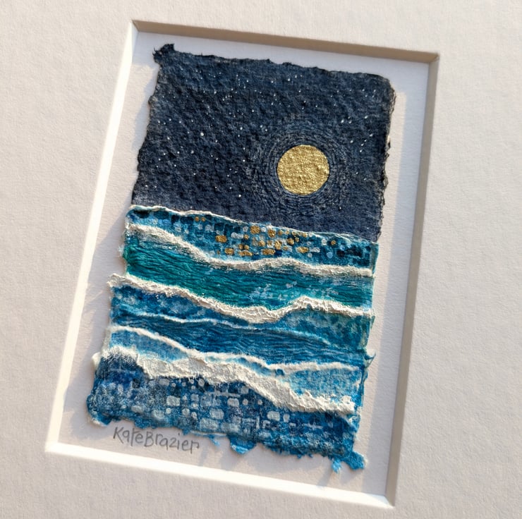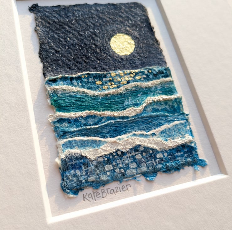 Original miniature collage with handmade Khadi paper, finished with gold pigment