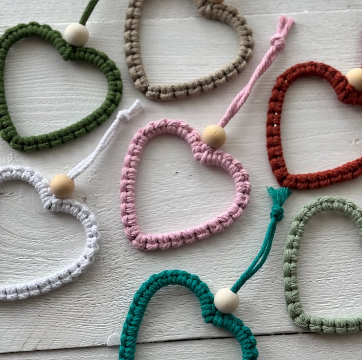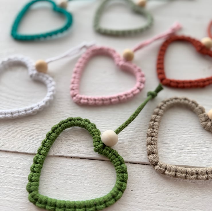 These little Macrame hearts are great for dotting around the home, add some essential oils to the bead and they will fragrance any room/cupboard/wardrobe!