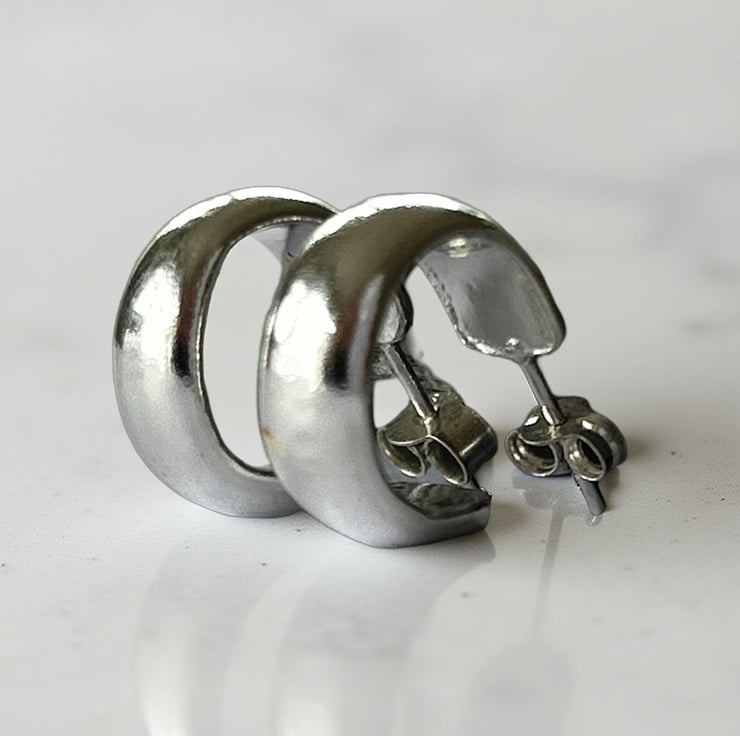 The perfect blend of sustainability and style with these Sterling silver hoop stud earrings, crafted from eco - friendly recycled silver. Designed for every day elegance, these hoops have a smooth finish and a beautiful weighty feel, making them a high - quality addition.